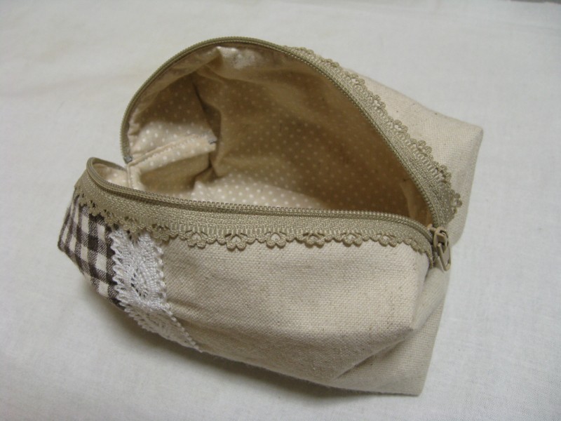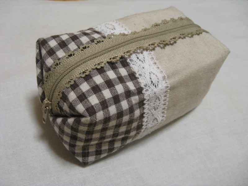綿麻の無地と綿のチェックを使用。あとはレースとレースファスナー。